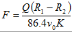 ,式中R1是濃縮前礦漿的液固(重量)比;R2是濃縮后礦漿的液固(重量)比;K1是礦量波動(dòng)系數(shù),K1=1.05~1.20,視原礦量波動(dòng)而定;v0是溢流中最大顆粒的沉降速度(mm/s),一般由試驗(yàn)確定。